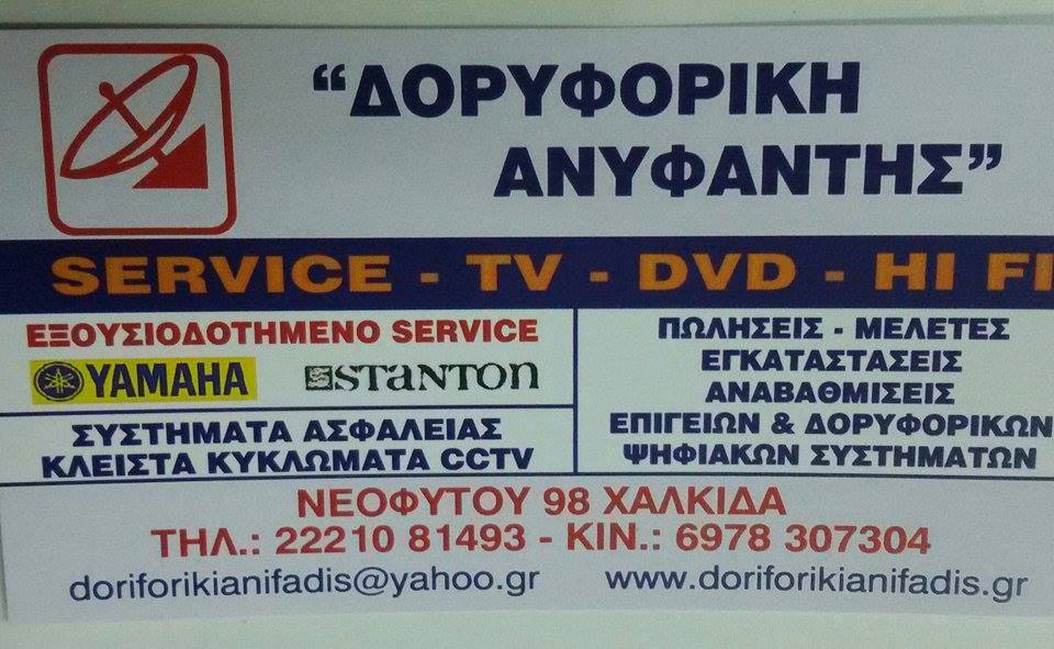 Μία επιχείριση στη Χαλκίδα όπου παρέχει τηλεοράσεις, κεραίες και διάφορες υπηρεσίες για του πελάτες της.