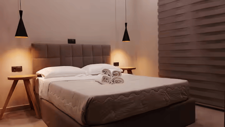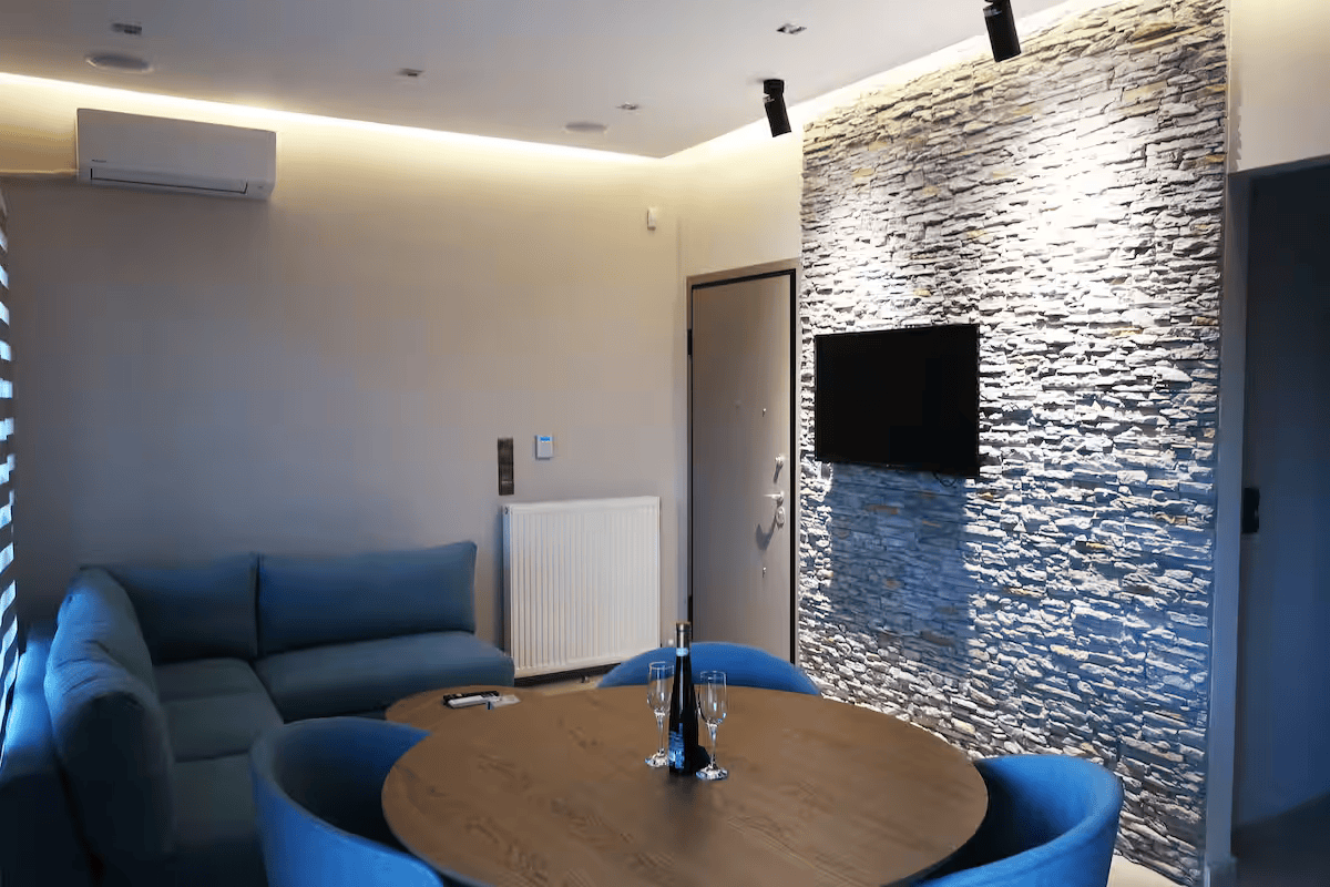Το διαμέρισμα αποτελείται από ένα ενιαίο χώρο καθιστικό-κουζίνα, δύο υπνοδωμάτια και ένα μπάνιο. Στο 1ο υπνοδωμάτιο υπάρχει διπλό κρεβάτι ενώ στο 2ο υπνοδωμάτιο υπάρχει καναπές κρεβάτι με μηχανισμό επιπλέον κρεβατιού με τη δυνατότητα επιλογής 2 μονών ή ενός διπλού. Υπάρχει πλήρης εξοπλισμένη κουζίνα με εντοιχισμένες ηλεκτρικές συσκευές, 2 τηλεοράσεις η μία εκ των οποίων είναι smart., εντοιχισμένα ηχεία, , θέρμανση, κλιματισμός και συναγερμός . Ένα ακόμα αβαντάζ του διαμερίσματος είναι το μπαλκόνι που διαθέτει για στιγμές χαλάρωσης.